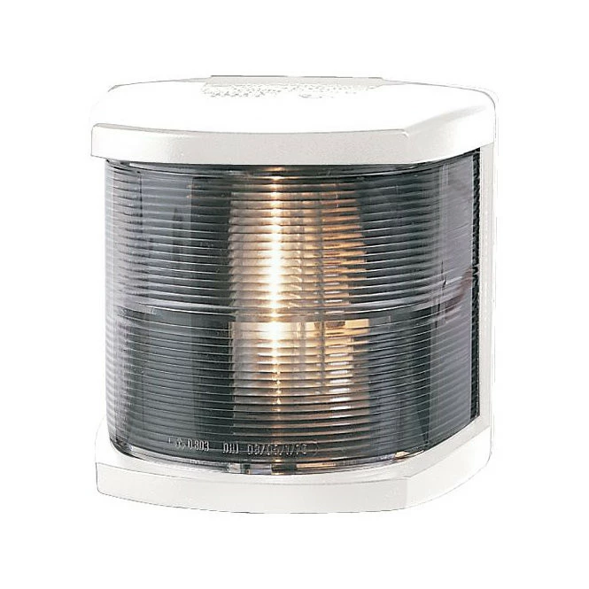 Kompakte Positionslaterne, BSH-geprüft. Amagnetisch und seewasserfest. Zwangsbelüftet. Schraubloser Gehäuseschnellverschluss mit Rastbefestigung. Hängende Glühlampe und Kontakte im oberen Bereich schützen die Anschlüsse vor Elektrolyse.