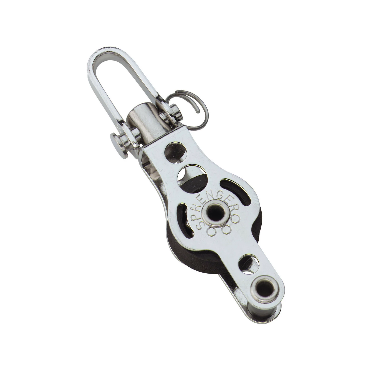 Der Herm. Sprenger Micro XS Block ist ein vielseitiger, durch sein Kugellager aus Edelstahl leichtlaufender Block. Die Seilrollen des Block von Sprenger haben einen Durchmesser von 19 Millimeter, eine Breite von 8,3 Millimeter und sind aus UV-beständigen Kunststoff. Der XS-Block hat Seitenteile aus rostfreien Edelstahl, welche mehr Sicherheit und Stabilität garantieren. Durch die spezielle Taumelvernietung des Herm. Sprenger-Block werden scharfe Kanten und somit die Beschädigung von Tau verhindert.