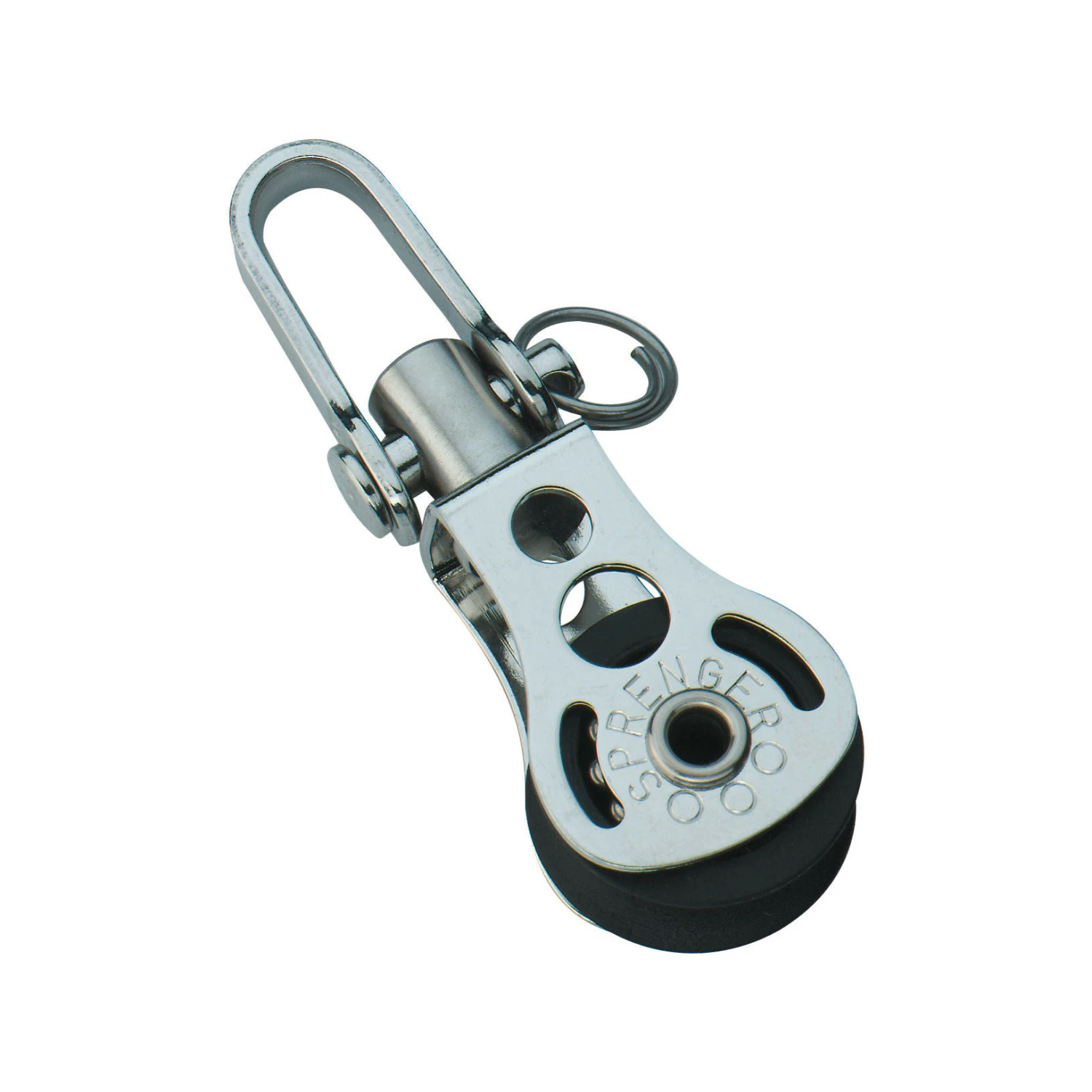 Der Herm. Sprenger Micro XS Block ist ein vielseitiger, durch sein Kugellager aus Edelstahl leichtlaufender Block. Die Seilrollen des Block von Sprenger haben einen Durchmesser von 19 Millimeter, eine Breite von 8,3 Millimeter und sind aus UV-beständigen Kunststoff. Der XS-Block hat Seitenteile aus rostfreien Edelstahl, welche mehr Sicherheit und Stabilität garantieren. Durch die spezielle Taumelvernietung des Sprenger-Block werden scharfe Kanten und somit die Beschädigung von Tau verhindert.
