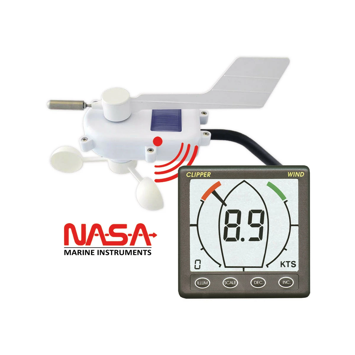 Die neue NASA CLIPPER Windmessanlage kommt ohne jegliche Kabel im Mast aus. Die unter Deck montierte Empfängereinheit gibt über eine Kabelverbindung die Windrichtung und –Geschwindigkeit an das CLIPPER Display oder jedes andere NMEA0183-kompatible Display, z. B. Ihren Kartenplotter, aus. Der Empfänger wird über das 12 V Bordnetz mit Spannung versorgt, die Masteinheit benötigt lediglich zeitweise helles Tageslicht um über die integrierte Solarzelle den Akku des Senders zu laden. Mit vollständig geladenem Akku ist ein Betrieb von 2.000 Stunden ohne Nachladen möglich.
