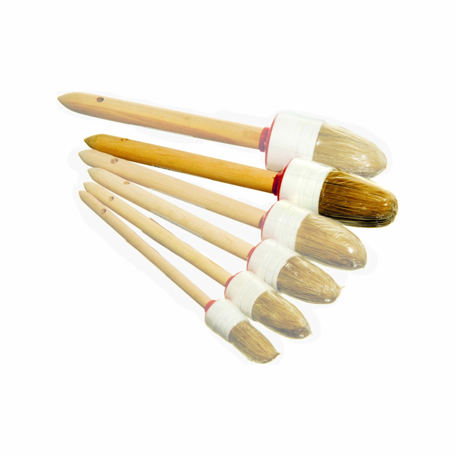 Der Qualitäts-Rundpinsel besteht aus Chinaborsten, welche mit Epoxy verklebt sind. Der Rundpinsel hat einen Holz-Stiel und ist für alle Farben, Lacke und Grundierungen geeignet.