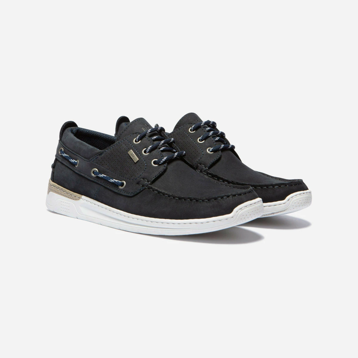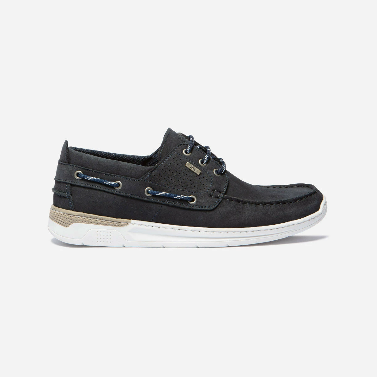 Ein Hybrid-Bootschuh für Boot und Straße aus Leder mit seitlichen Akzentnähten. Hergestellt in Portugal.