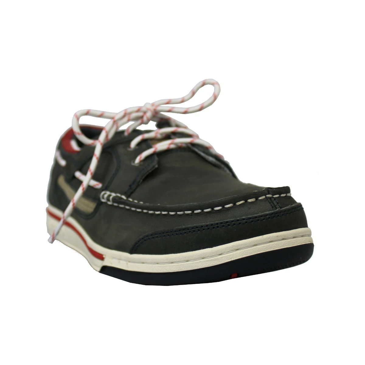 Die Außensohle besteht aus Gummi und ist – typisch Bootsschuh – rutschfest und nicht-abfärbend, damit auch auf nassem Untergrund einen sicheren Stand hat.