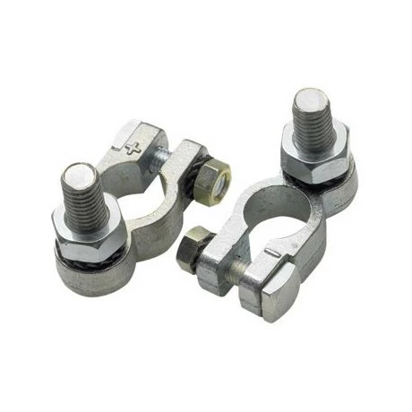 Die Vetus Batterieklemme ist eine schraubbare Verbindung zum Anschluss von Kabeln an die einzelnen Kontakte an der Bootsbatterie. Die Polklemme von Vetus gewährleistet eine mechanisch sichere Verbindung und lässt durch ihr große Kontaktfläche hohe Ströme zu, wie sie zum Beispiel beim Starten des Motors vorkommen. Die Vetus Batterieklemme besitzt ein M10 Anschlussgewinde für Kabelschlösser und wird im Paar geliefert.