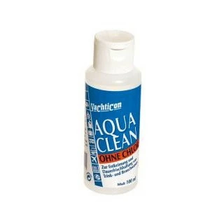 Yachticon Aqua Clean ist ein Konservierungsmittel für Trinkwasser. Es hält das Wasser für bis zu 6 Monate frisch und wohlschmeckend. Aqua Clean in den Trinkwassertank einfüllen und für zwei Stunden einwirken lassen. Die Flüssigkeit ist für eine Tankgröße von 50 bis 150 Litern geeignet. 100 Milliliter Flüssigkeit reicht für 1000 Liter Tankinhalt. Das Produkt enthält kein Chlor und ist daher geruchs- und geschmacksneutral.